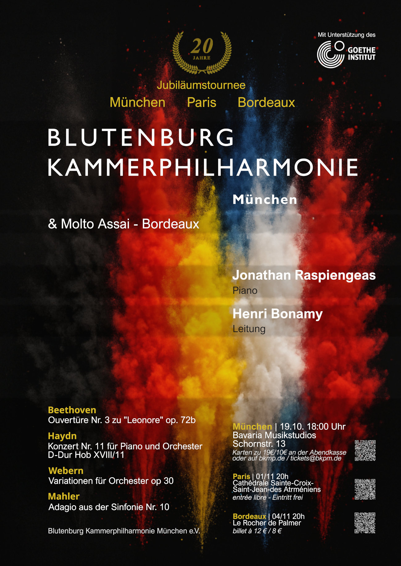 Mit großer Freude und echtem Herzensengagement feiern wir unser 20-jähriges Bestehen - mit einer Konzertreise, die uns von München über Ulm und Paris bis nach Bordeaux führt.